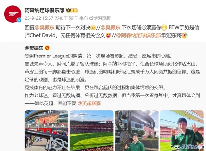 阿森纳官方微博也评论了樊振东, 乒乓球表示:欢迎东哥。