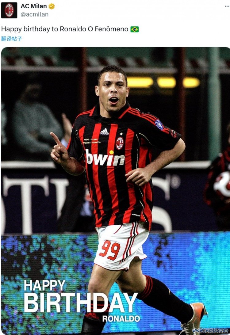 9月22日讯 今天是巴西名宿罗纳尔多49岁生日,前东家AC米兰也晒出海报为其送上生日祝福。