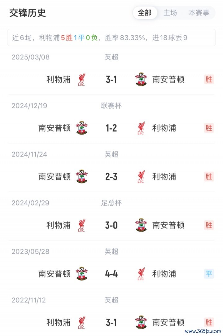 利物浦职业联赛 5战全胜积15分暂位英超榜首,篮球快讯目前各项赛事6连胜;南安普顿职业联赛 1胜3平2负积6分暂位英冠第19,近3轮职业联赛 不胜。利物浦各赛事对阵南安普顿已9场不败(8胜1平)。