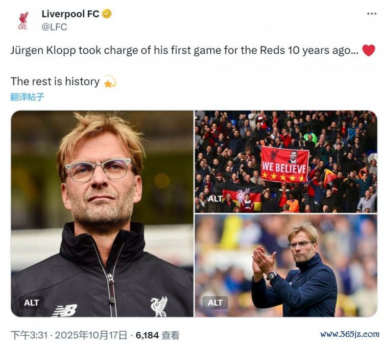 10月17日讯 10年前的今天,克洛普执教利物浦首秀。