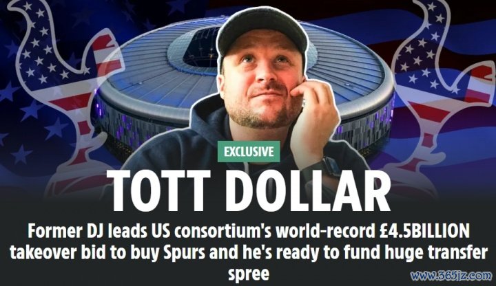 09月26日讯 太阳报独家报道,一家美国财团计划以创世界纪录的45亿英镑总报价买托特纳姆热刺。
