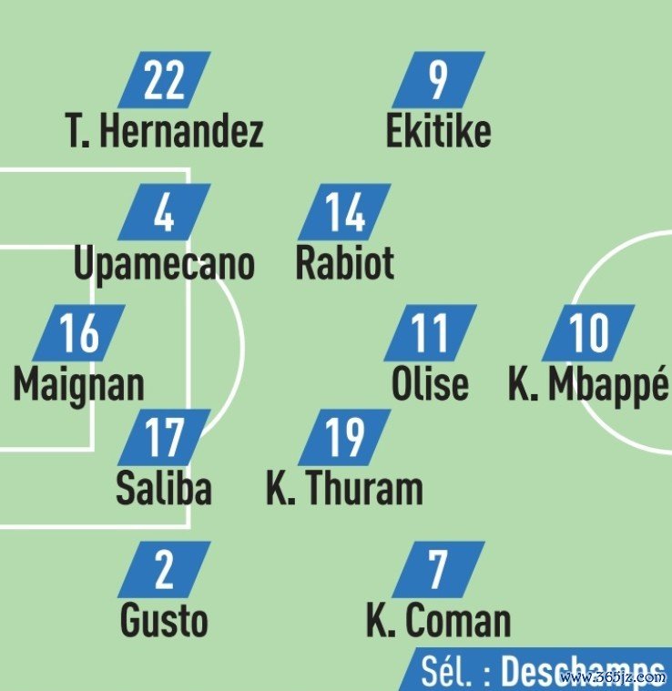 队报预测法国队首发:迈尼昂;特奥、于帕梅卡诺、萨利巴、古斯托;拉比奥特、K-图拉姆、埃基蒂克、奥利塞、科曼;姆巴佩免费直播英超直播视频