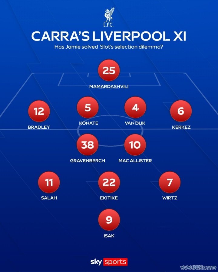 10月21日讯 在天空体育的周一足球夜节目中, 卡拉格谈到了利物浦当前面临的困境,为此他提出了一套他认为更为合适的首发阵容。