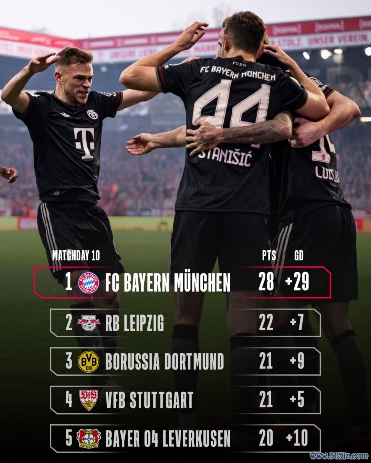 11月10日讯 德甲第10轮比赛,拜仁客场2-2战平柏林联合。